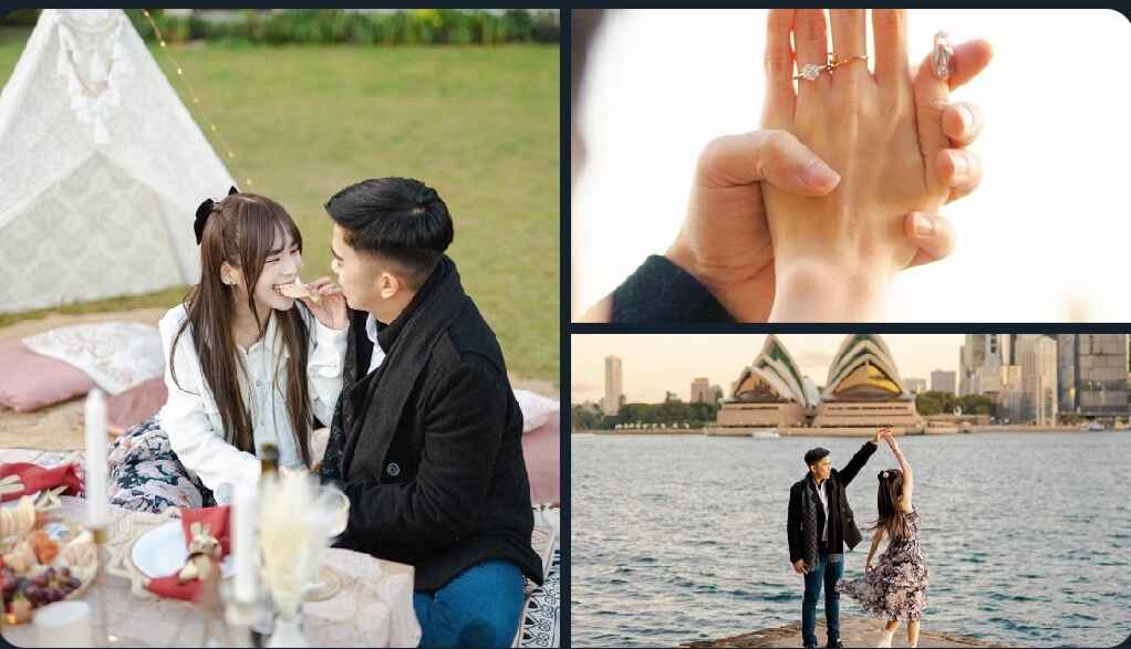 The pictures show a beautiful backdrop of the Australian landscape, but all eyes are on Yupi's sparkling ring and the couple’s beaming smiles.